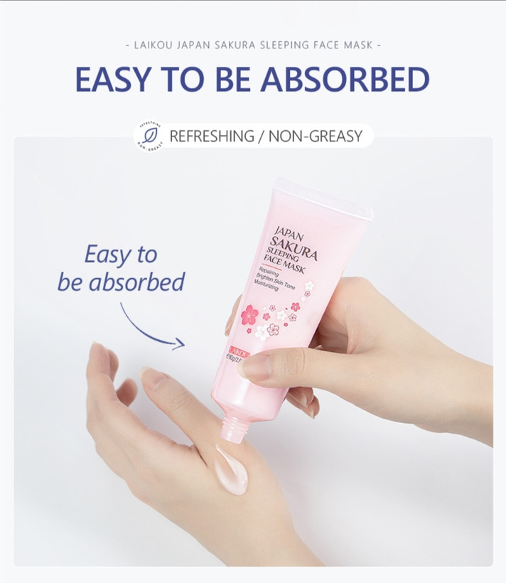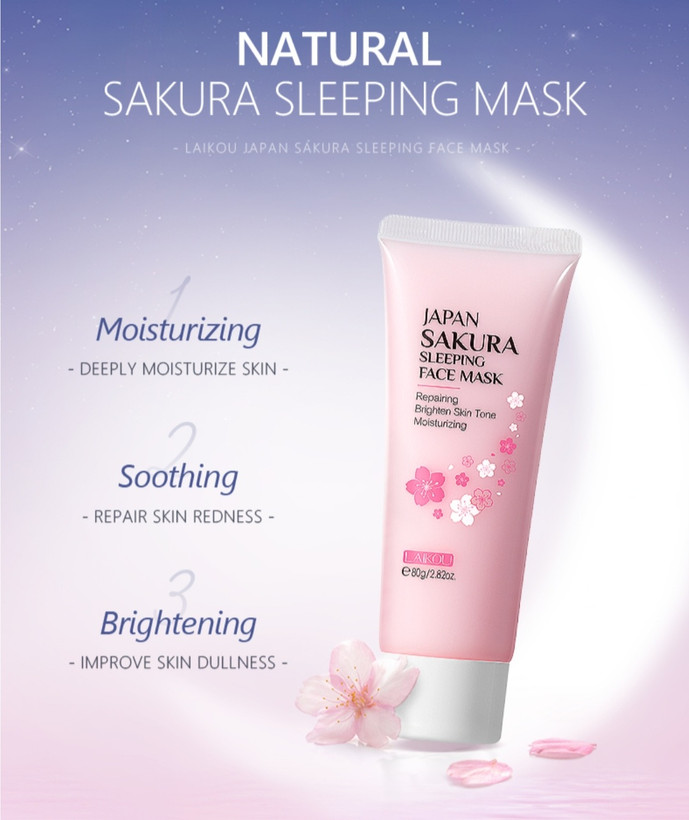 از آن جایی که ساکورا حاوی اسیدهای چرب لازم بدن است،از پوست محافظت می کند و آن را ترمیم کرده و نرم و لطیف می سازد. ماسک خواب و مسافرتی ساکورا پوست را سفید و جوان می کند.