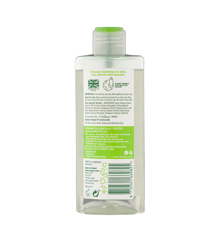 میسلار واتر یک پاک کننده صورت است. میسلار واتر میتواند علاوه بر پاکسازی پوست از آلودگی محیط، انواع آرایش صورت را نیز کامل پاک کند. میسلار واتر سیمپل یک محصول مناسب برای انواع پوست است. در فرمولاسیون این میسلار مواد مضر، عطر و رنگ استفاده نشده و مصرف آن هیچگونه مشکلی برای پوست ایجاد نمیکند. از دیگر مزایای بسیار خوب پاک کننده صورت سیمپل میتوان به رطوبت رسانی آن اشاره کرد که باعث مرطوب شوندگی پوست به مدت 4 ساعت میشود. با استفاده مرتب از این محصول پوست شما همیشه تمیز، شاداب و بدون چروک باقی خواهد ماند. حجم میسلار واتر سیمپل 200 میل بوده و قابل سفارش به صورت آنلاین از طریق فروشگاه اینترنتی خانومی است.